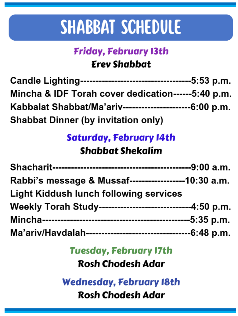 To register for 2/20-2/21 Shabbat services & classes, please click here.