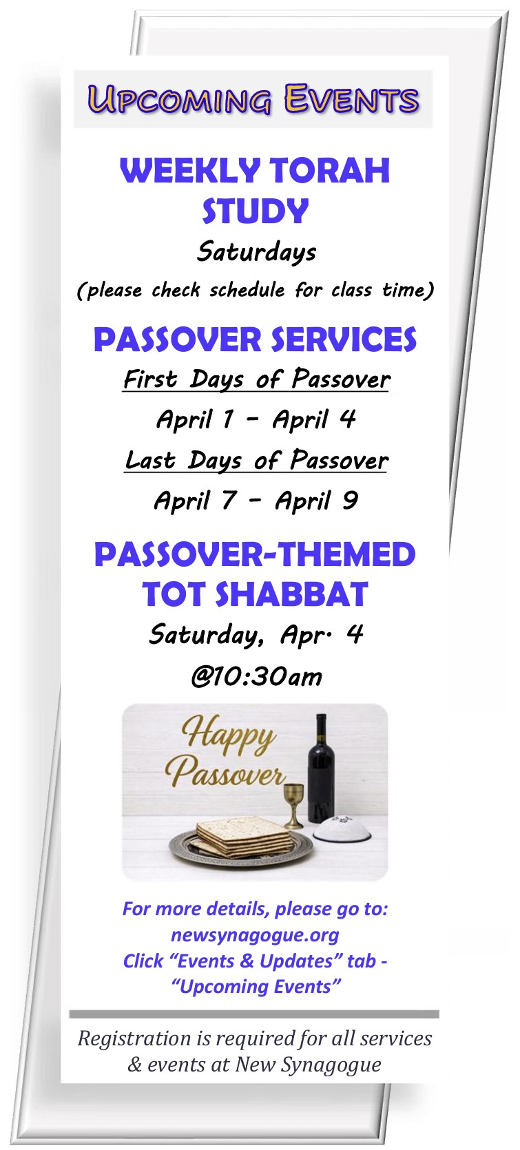 **Registration is required for all services & classes at New Synagogue.